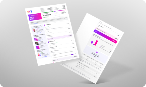 - all' app My Sky > vai in Gestisci > seleziona la card Abbonamento > nella sezione Pagamenti e fatture seleziona Modifica > scegli la modalità di ricezione della tua fattura alla voce Preferenze fatturazione
