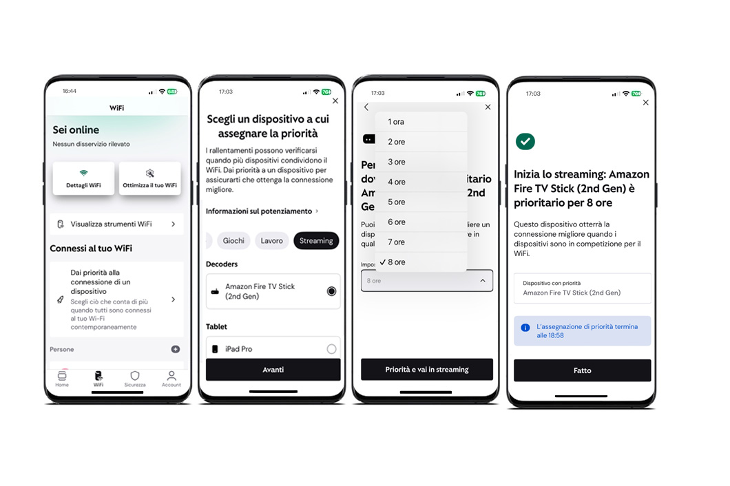 Puoi assegnare la priorità a un dispositivo alla volta, solo se connesso in WiFi e per un tempo massimo di 8 ore. Al termine delle 8 ore Wifi Boost si disattiverà automaticamente.